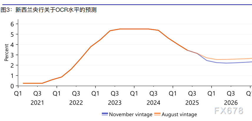 此外,新西兰央行在《货币政策声明》中公布的OCR利率走势预测显示,利率水平将降至2.2%的最低点,这一预测与当前的OCR利率水平相符。