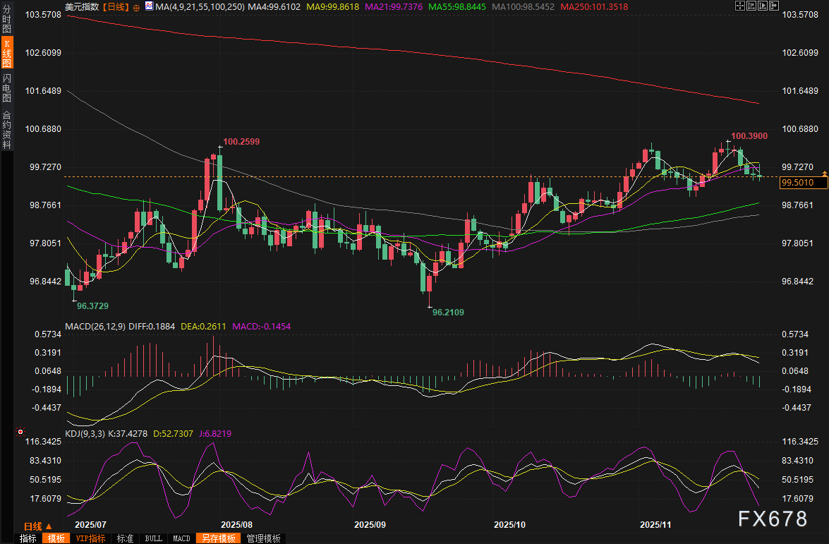 Spectra Markets总裁Brent Donnelly指出,市场很快将转向2026年的交易策略,而“做多美元”绝不会是主流选择,这种鸽派预期已让美元本周录得7月以来最差周度表现,美元指数周五小幅下跌0.09%至99.44,周线跌幅达0.61%。