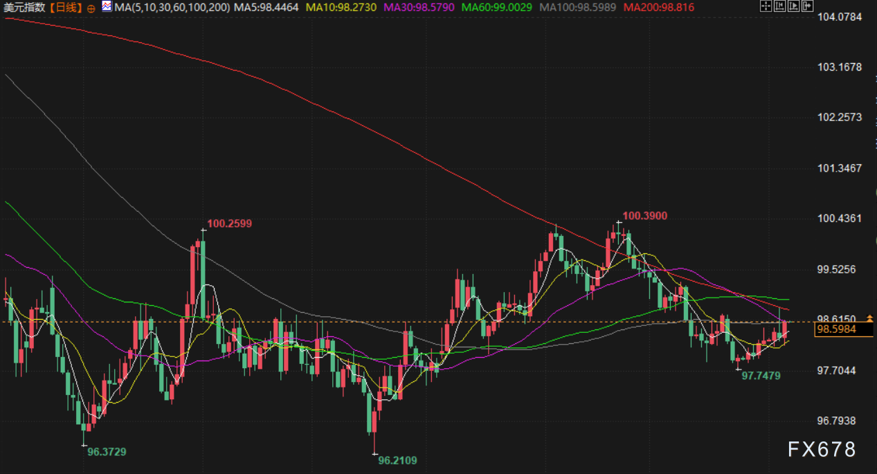 英镑兑美元下跌0.27%至1.3504美元,早前曾触及近四个月高点。澳元兑美元上涨0.36%至0.6737美元,盘中升至逾一年高位,该货币对全球风险情绪敏感,常与股市同步波动。美元指数上涨0.19%至98.57。