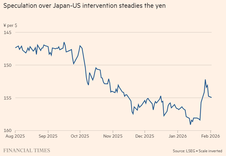 在本周末日本大选之前,日元兑美元从令人不安的 160 关口回落,对政府来说是个好消息。但直接的货币干预(如果真的发生)可能会使局面复杂化。干预可能会引发猜测(无论对错),即日本财务省可能会减持其持有的美国国债,以筹集资金购买日元。